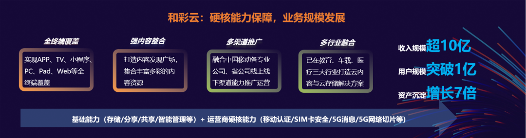 二类是和彩云自身构建的产品能力优势。主要是 P 级安全可靠云存储能力、与运营商特色能力 5G 消息、SIM 安全认证、短信小程序等有机融合的能力。