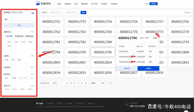 400支持用多种方式来筛选号码,满足不同用户的需求,让每位用户都能选到自己心仪的号码: