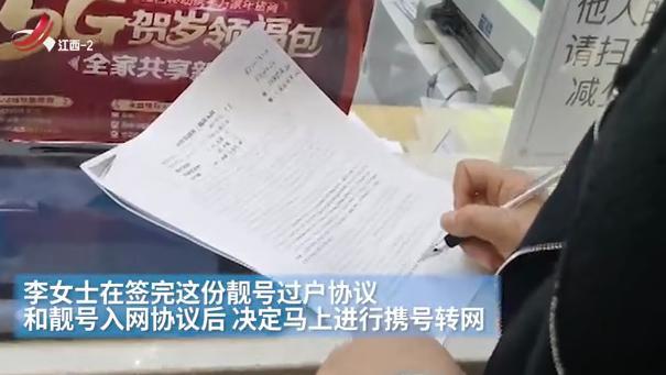 李女士当面签署了这份协议,不过在签完这份靓号过户协议和靓号入网协议之后,李女士决定马上进行携号转网。李女士表示,这一次自己真被他们的服务态度气到了,如果当初过户顺利地话,她可能不会想到携号转网这件事。