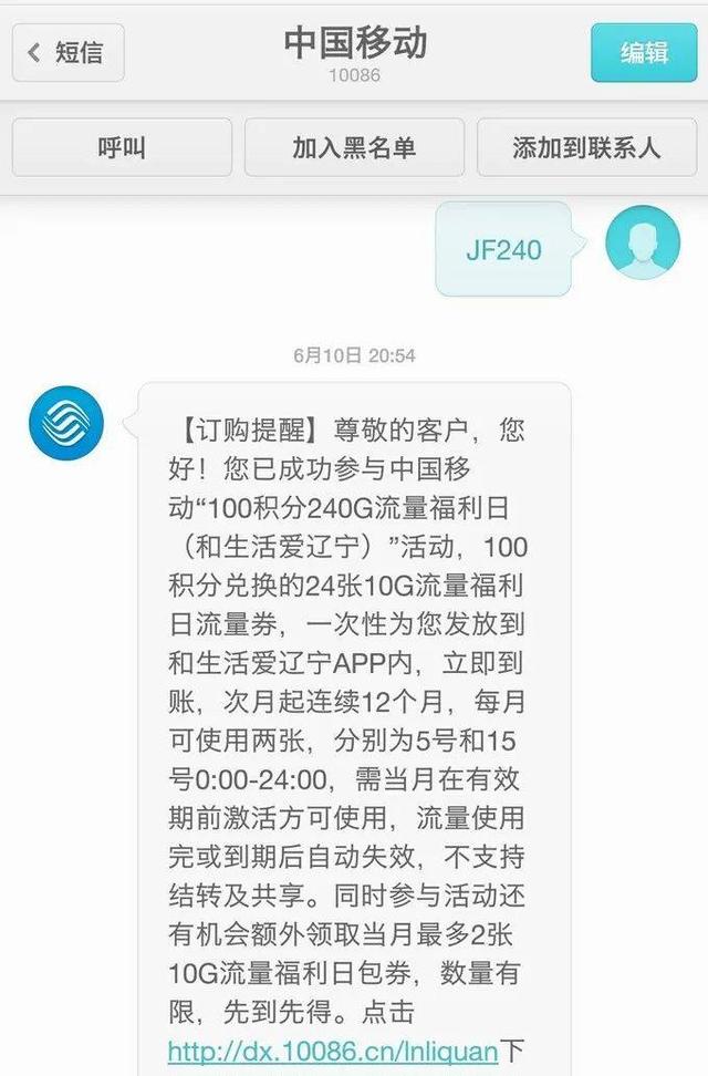 比如2020年年中的时候,中国移动就推出了“100积分管1年流量240G”的羊毛,具体就是发送JF260到10086即可100积分兑换1年流量券,每月5日、15日当日可用,10G流量券,当日有效,每月两张,流量不多的可以领下备用。