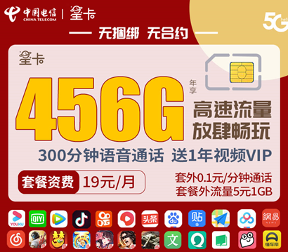 l 资费:月租19元=8G通用+30G定向流量+5元/GB/天+300分钟语音通话+首次激活20元话费