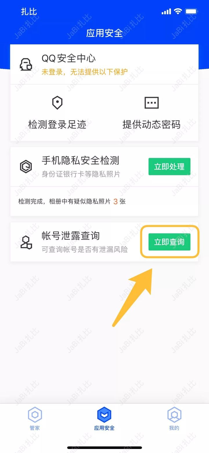 在「应用安全」页面中,找到「账号泄漏查询」功能,并点击「立即查询」。