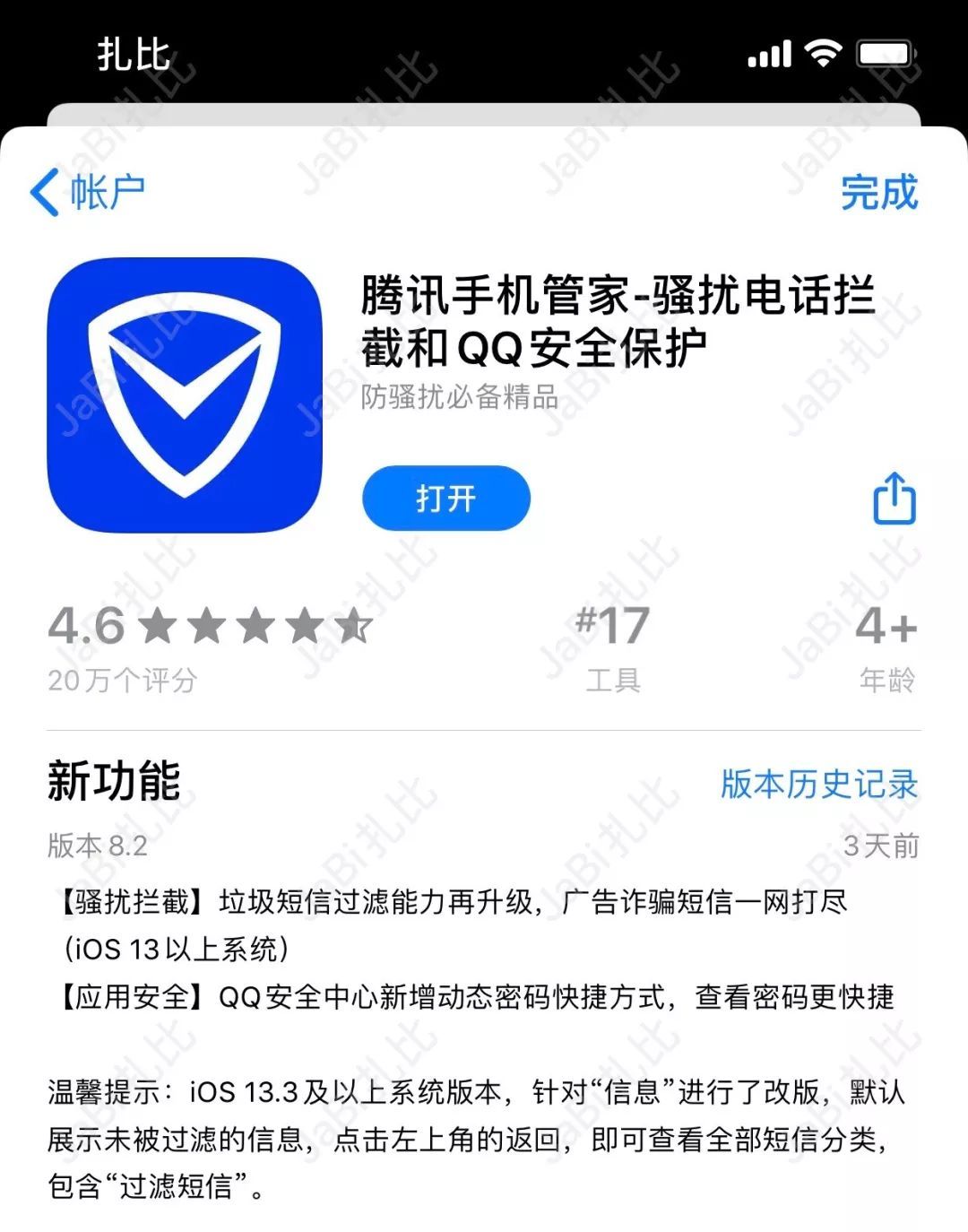 首先,在 App Store 下载一个「腾讯手机管家」App,注意要 v8.0 版本以上,低版本会没有这个功能。