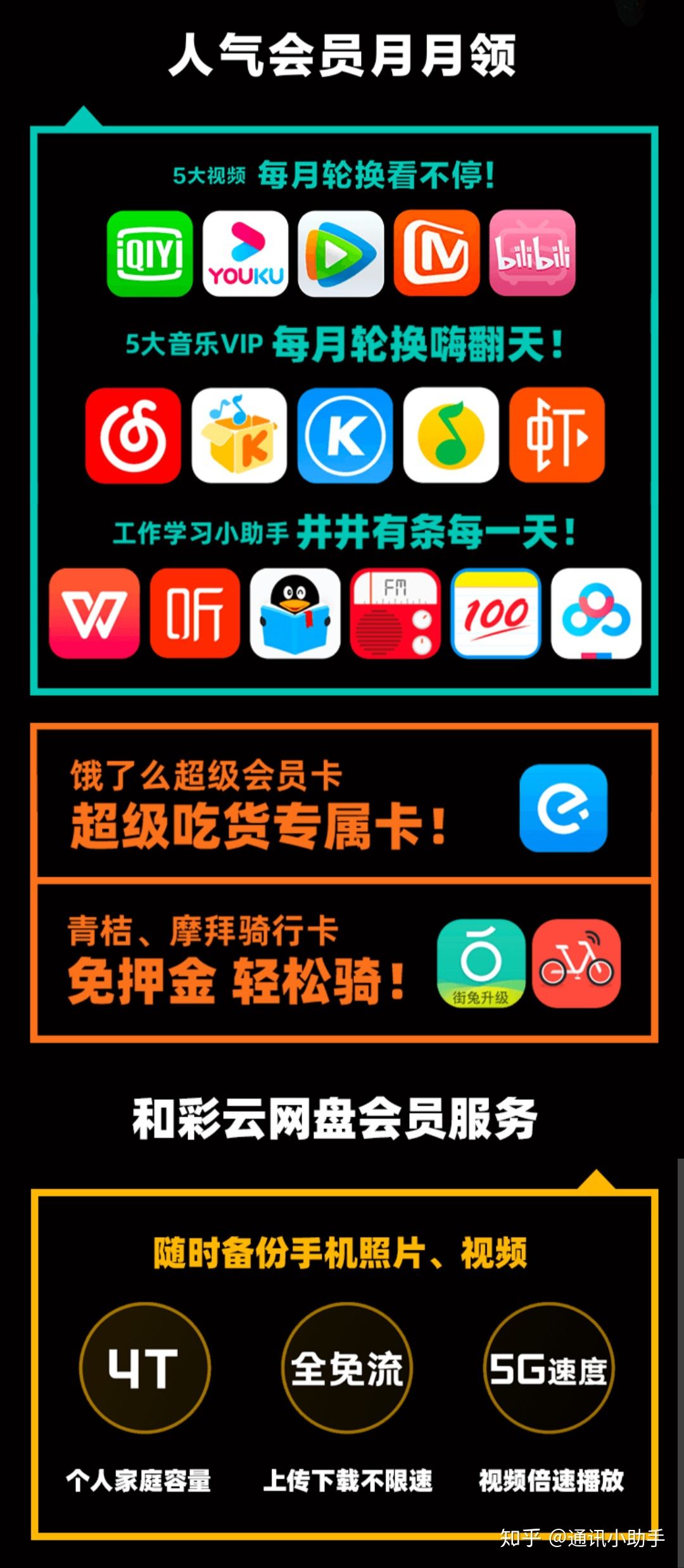 - 热门APP会员每月送(总共送12个月,每月在腾讯视频、哔哩哔哩、爱奇艺、网易云音乐等APP会员里挑);