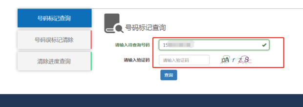 点击输入手机号可以进行查询是否被标记。