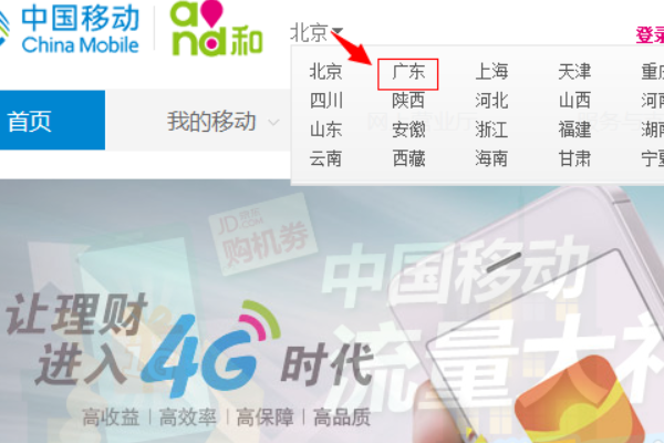 2、在首页顶部选择自己所在的省或地域,如“广东”。