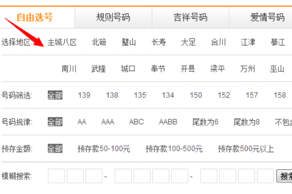 6、在筛选结果中寻找,看是否有想要的号。如果没有,可以过一段时段来看看,因为毕竟是免费的东西,有运气成份。如果有充裕的资金,直接可以预存高额话费拿靓号。