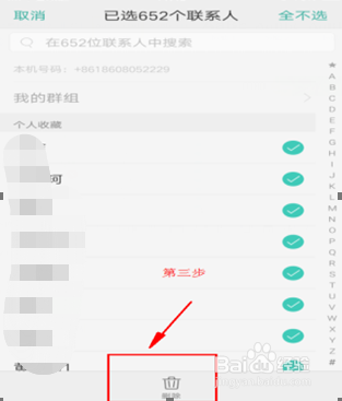 大家切记要删除,以防别人拿到卡之后,可以通过这些信息联系到手机通讯录进行诈骗。以安卓手机为例,打开“联系人”->选择”编辑” ->“全选”->“删除”,详见下图: