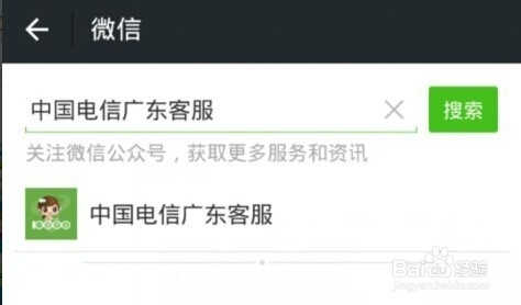 进入以后再搜索关注一下【中国电信广东客服】我的是广东的卡就关注这个,其它的城市没有试过。