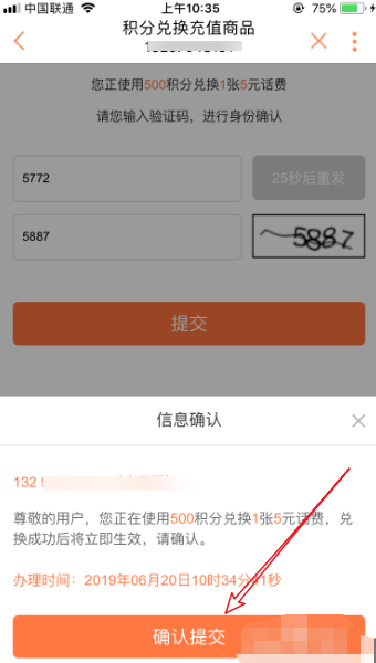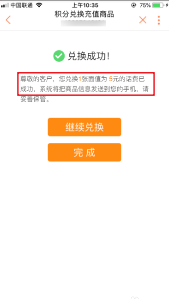 5、最后就可以看到已经成功用积分兑换好话费了。