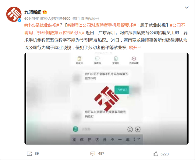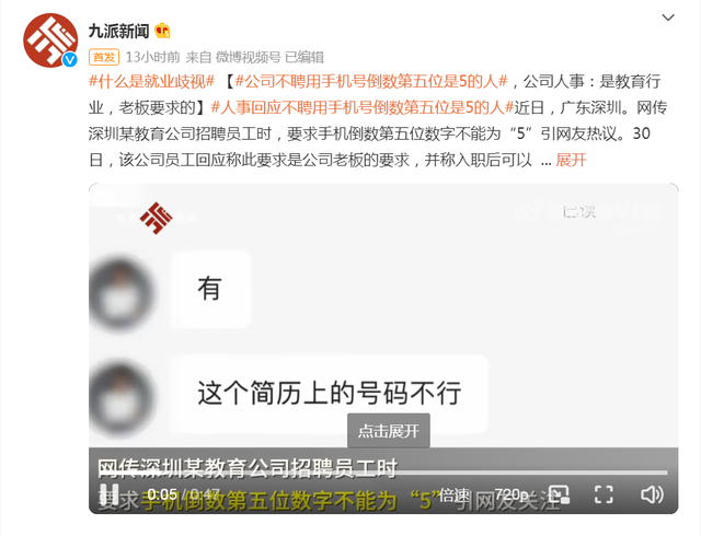 热议!不聘用手机号倒数第五位是5的人,公司员工回应;就业歧视难题如何破解?