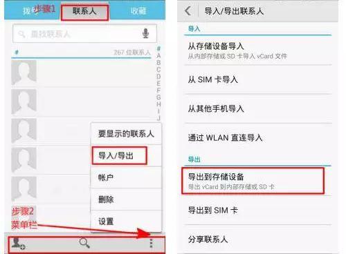 导出到SD卡,打开手机通讯录→选择菜单功能→选择“导入导出”→“导出到存储设备”,即完成备份。