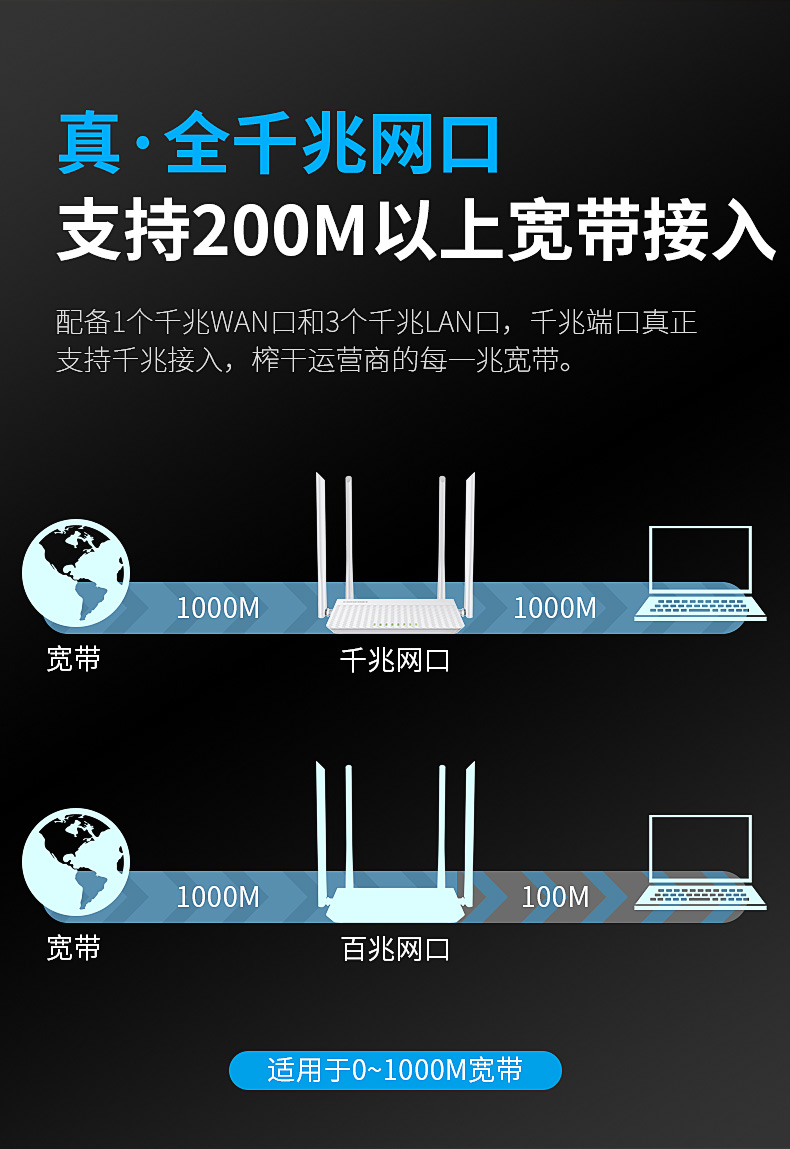 如果是的话,那么还是不能支持200M及以上的宽带,需要更换一台千兆网口的无线路由器。千兆网口的无线路由器,一般无线传输也已超过千兆,应对200M及以上的宽带也毫无压力了。
