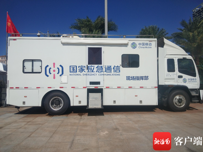 中国移动海南公司派出4辆应急通信车,保证逾10万用户正常通信,也为有直播带货需求的参展商提供了便利。记者钟圆圆 摄