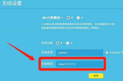 3.进入后,找到【无线设置】,点击需要修改的WiFi密码框,输入新密码保存后,密码修改完成。