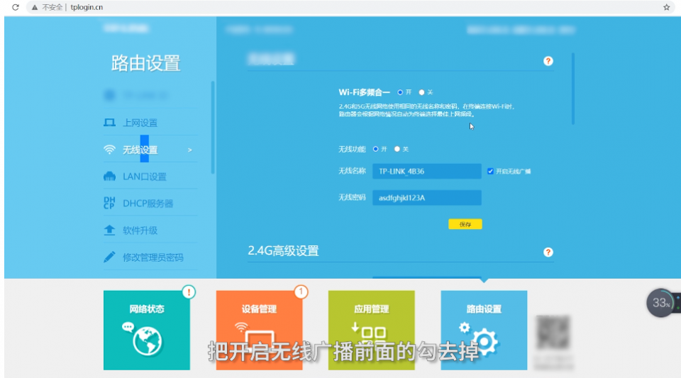 设置强度高的密码,密码最好由字母大写+字母小写+数字+字符组成,且长度最好不少于12位,这样可以有效阻止他人破解,设置方式同样先是进入管理网址,然后无线设置 >> 无线安全设置