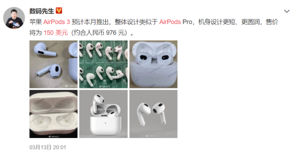 据消息透露,第三代 AirPods采用了最新的H2 芯片,续航时间会更长。外形上也有变化。耳柄缩短了一点,体积会更小。功能点上增加了“物理降噪”,效果能够接近 AirPods Pro,不过依旧不支持主动降噪。还增加了血氧检测功能,用户用耳机就能检测血氧。价格上,预计售价为150 美元(约合人民币 976 元)。