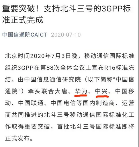 那为什么首批认证名单里没有华为呢?因为北斗三号国际标准是由华为、中兴参与制定的。也就是说华为是北斗导航国际标准的制定者,显然没有必要再次得到认证。