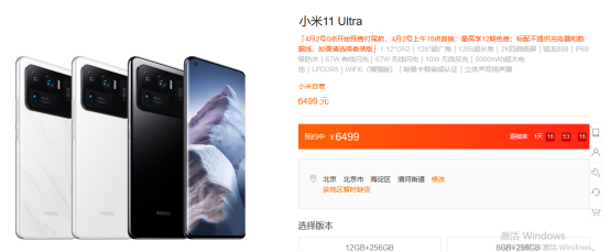 配置这么顶配,价格也一样漂亮。小米11 Ultra定价为8+256GB 5999元、12+256GB 6499元、12+512GB 6999元,官网目前已经是断货的状态。