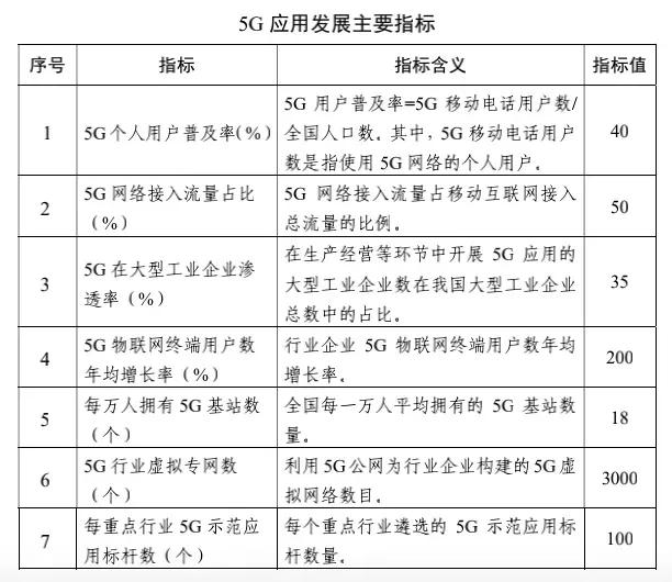 2021年4月30日,工信部《5G应用“扬帆”行动计划(2021-2024年)》(征求意见稿)发布,提出7项5G应用发展主要指标。