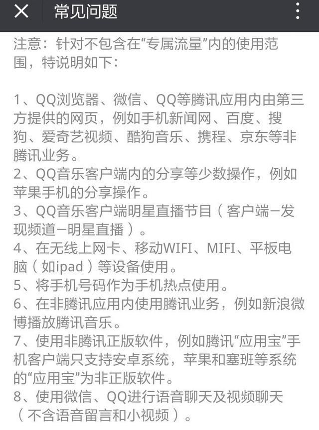 并不,腾讯系APP免流量还是存在一些特殊情况的。敲黑板!下面是官方给出的不免流特殊情况列表: