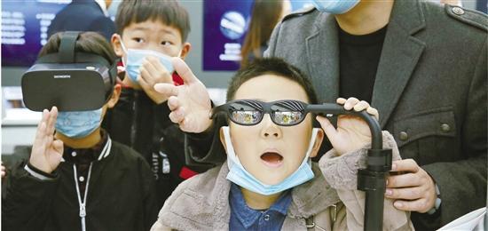 展台工作人员介绍,目前,浙江移动已打造了多终端多形态VR产品,不仅支持5G手机裸眼看VR,还支持卡片机、分体机和一体机等多种终端形态。记者了解到,适合入门级用户的是卡片机,只需要将5G手机插入即可体验虚拟大屏视角;而VR分体机,适合进阶用户,相比卡片机,VR分体机画质更清晰;一体机则可以提供深度沉浸式体验,适合高阶用户。