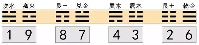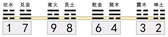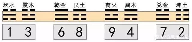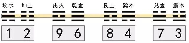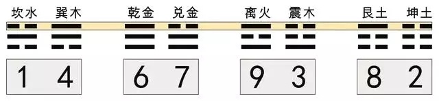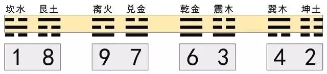 坎一、坤二、震三、巽四、五为中宫,乾六、兑七、艮八、离九,也称为八纯卦。